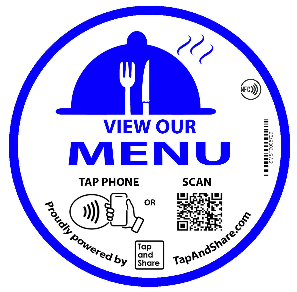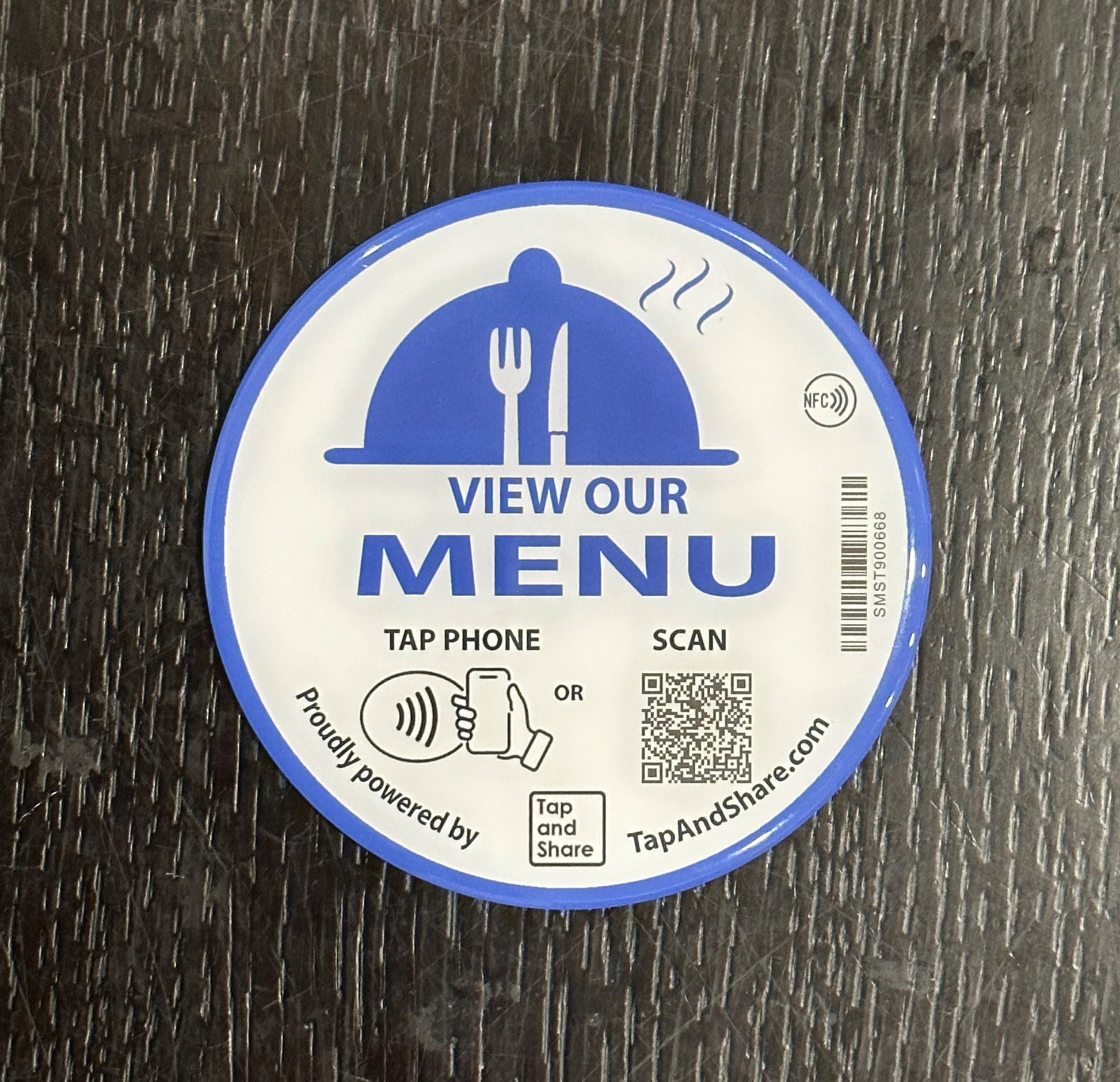 Tap and Share Contactless Sharing Smart NFC 'View our Menu' Epoxy Sticker + QR code